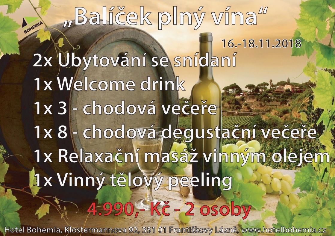 "Balíček plný vína", jehož součástí je degustační 8-chodová večeře