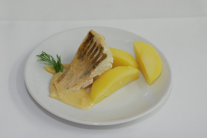 Fillet of pike perch with lemon sauce, boiled potatoes